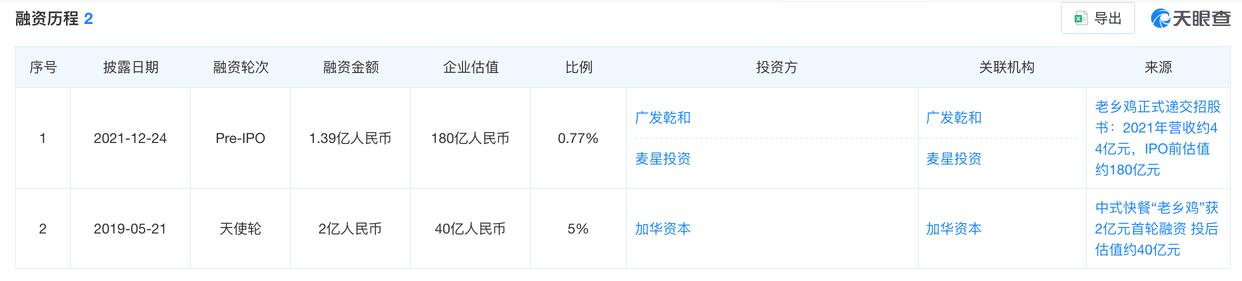 从外部融资过程来看,天眼查显示,老乡鸡自开办以来共履历两轮融资。2019年,加华本钱通过旗下基金注资约2亿元,成为老乡鸡首家外部投资机构,彼时老乡鸡估值达到40亿元,尔后正在2021年,麦星投资和广发乾和合计向老乡鸡注资1。39亿元,这轮融资竣事后,老乡鸡估值攀升至180亿元人平易近币。2024年1月,老乡鸡完成了对麦星投资和广发乾和的股份回购,截至上市前,老乡鸡外部股东仅剩加华本钱,招股书显示,加华本钱持有老乡鸡4。98%的股份。值得一提的是,据胡润研究院最新发布的《2025全球独角兽榜》显示,老乡鸡估值已下跌至90亿元,较之巅峰期呈现“腰斩”。